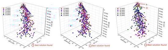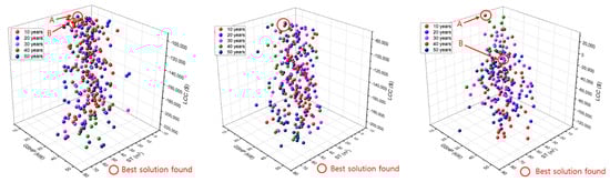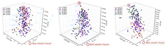 | ST (m2) | GSHP (kW) | LCC ($) | ST (m2) | GSHP (kW) | LCC ($) | ST (m2) | GSHP (kW) | LCC ($) | |