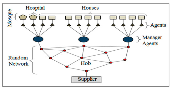 DNsys Architecture: the proposed system architecture included several houses, one mosque, and one hospital. Each one of these components considered a node with its data with related agents. Every agent had its objective, and it worked to achieve it. The system architecture components described are as follows: