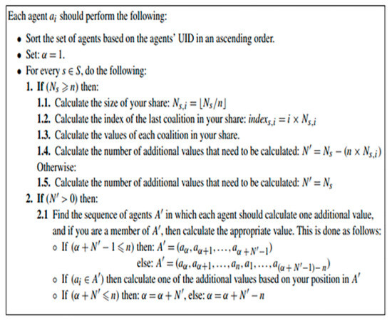 - Rahwan, T.; Jennings, N.R. An algorithm for distributing coalitional value calculations among cooperating agents. Artif. Intell. 2007, 171, 535–567. [Google Scholar] [CrossRef][Green Version]