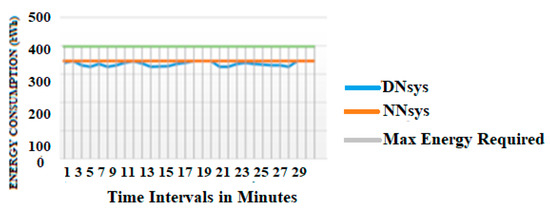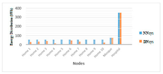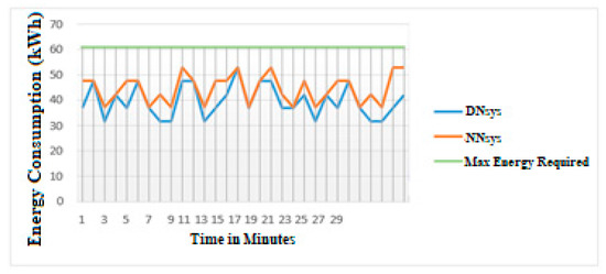 The total energy consumption used in the NNsys was 950.2 kWh, while the proposed DNsys consumed a total of 632.2 kWh of energy Table 4 and Figure 15.