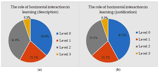 In Figure 1a, it is observed that 46.2% of the groups (12 out of 26) did not make a general description of the principle of social interaction in the groups identified. In their reports, they did not include any descriptive element regarding the general meaning of social interaction as a learning principle.