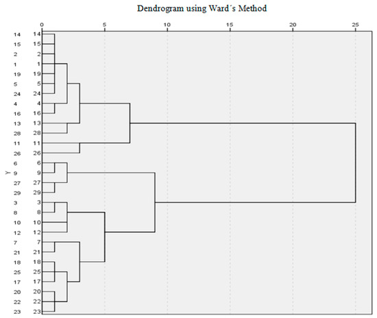 To analyse the ambidextrous orientation of Spanish TTOs and individuals, and the degree of relational capital that these units possess, the hierarchical cluster methodology [101] was applied to identify similar characteristics. The hierarchical cluster methodology is suitable for this research as the number of clusters is not known a priori, our variables are quantitative, and the number of cases, at 29, is not high [102].