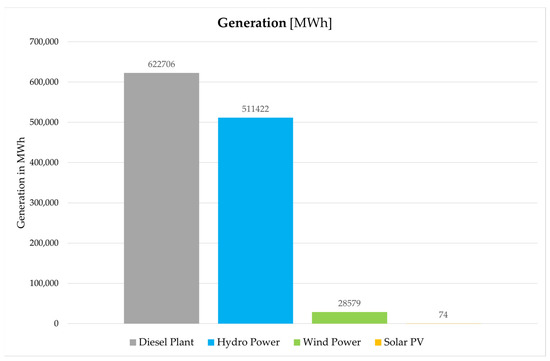 The scenario analysis examines the introduction of renewable energy resources, such as PV, wind, and hydropower, at different penetration levels as represented. The research investigates the cost aspects of integration over a 30-year period. On the renewable cost side are installation, operation, and maintenance costs. These costs of integrating renewables are compared to a base case. The base case assumes that an existing fossil-fueled power plant generates electricity. Since the age of the existing power plant is unknown, the urgency with which the diesel generator should be replaced is also unclear. This assumption favors diesel as an energy source. Using the real age of the diesel generator would have made it impossible to compare the three different cases. The base case involves operation and maintenance costs.