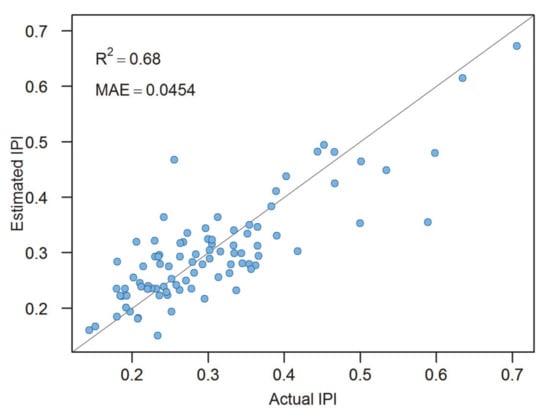 Scatterplot between the actual and estimated IPI values of county-level administrative districts.