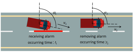 LDW-DS4: In this category, alarm time is generally long and the change of angle is relatively large. After the verification of naturalistic video records (as shown in Figure 10), it can be found that records in this category are mainly caused by drivers’ non-standard driving behavior (i.e., changing lanes without using turning signal). These records will not be further discussed in this paper.
