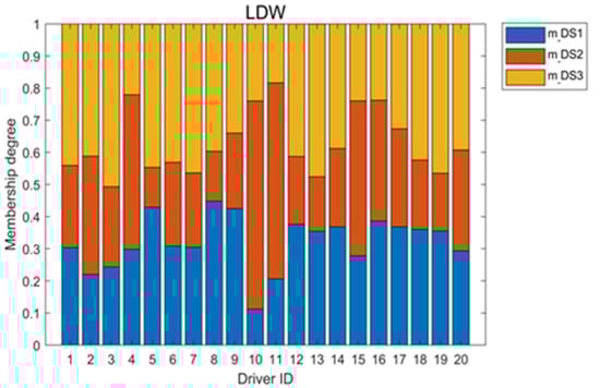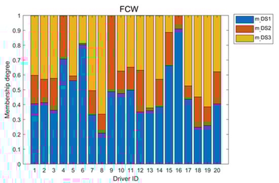 As depicted in Figure 5, there is a significant difference between Driver 8 and Driver 11 in the distributions of their reactions to LDW and FCW. To describe this difference, in this section, the membership degree is introduced to express the drivers’ reactions.