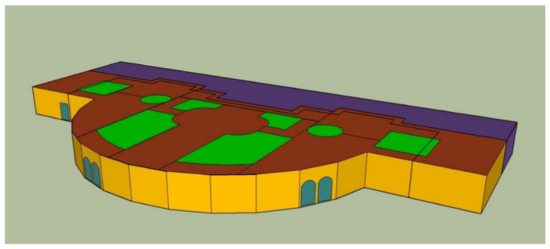 All of the collected information allows for a definition of a three-dimensional model (Figure 9) for the resolution of the heat transfer under transient conditions through the building components.
