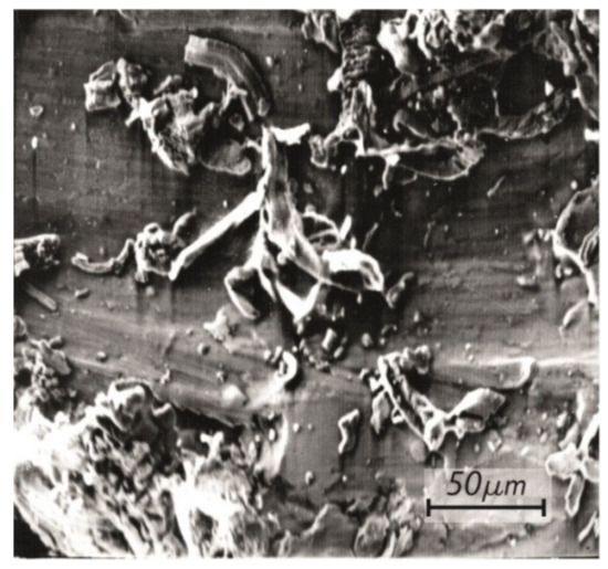 By analyzing the data in Table 2 and Table 3, it becomes obvious the new composite has higher both mechanical and antifriction properties in comparison with the currently used material for similar conditions [3]. Waste-based composite is also able to operate at higher temperatures and withstand much higher maximum loads. In addition, the new composite contains powders of a more efficient solid lubricant such as CaF2 for high-temperature operation, as opposed to graphite in the known composite [3] applied in similar conditions.