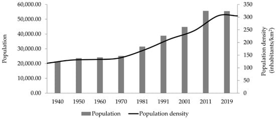 Figure 6, both population and population density in Portimão increased until the 2001–2011 period. However, the financial crisis led to a downward trend in both the population and the LULC area growth rates, and population density in the last temporal period under analysis and, thus, to a decline in land consumption. Since the 1970s, the population has grown considerably, and the population density has tripled during the study period. A careful analysis of