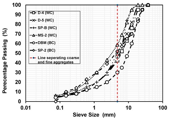 | Sieve Size (mm) | Gradation (% Passing) | |||||