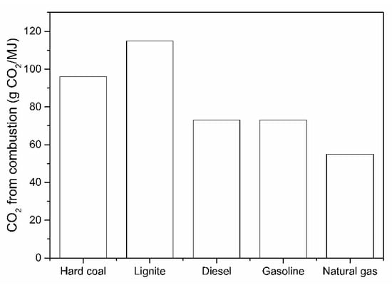CO2 emissions when burning an equivalent energy unit of fuel.