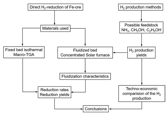 Some selected and important publications are listed in Table 1 according to their main output. Research on fixed/moving or fluidized ore reduction was separately included in the Table. The solar energy potential was not previously reported upon.