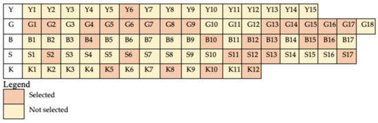 The number and location of the PCCs were determined using the e-MCLP method. The solver software was used to determine the optimal solution. The calculations showed that 30 PCCs are to be built as shown in Figure 1 and Figure 2 with a distribution of 1 unit in Yogyakarta city (Y6), 13 units in Gunung Kidul Regency (G1, G2, G4, G5, G6, G7, G8, G9, G13, G14, G15, G16, and G17), 6 units in Bantul Regency (B4, B10, B12, B13, B15, and B16), 6 units in Sleman Regency (S2, S6, S11, S12, S13, and S17), and 4 units in Kulon Progo Regency (K5, K8, K10, and K12). The selected PCC numbers and locations are shown in Appendix C.