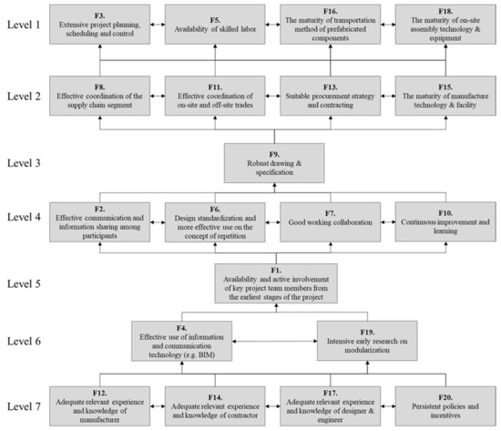 Several studies [3,10,11,12,13,14,15,16,17,18] identified the factors related to OSC success in a variety of ways, such as to provide the underlying information needed to establish strategies for the successful implementation of OSC projects. However, the relationship and hierarchy of interactions between the identified factors are yet to be determined. In response, this study aims to establish the interrelationship among OSC success factors identified in the existing research literature and to propose a structural model for success factors. Furthermore, it discusses the managerial implications based on the proposed structural model.