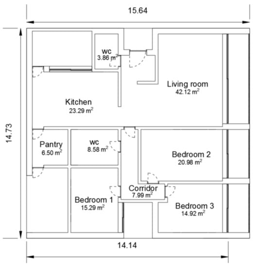 Case study floor plan (in meters).