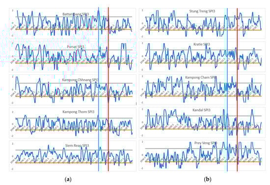 (a) SPI3 in the Mekong River region. (b) SPI3 in the Tonle Sap region.
