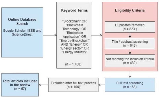 Keyword terms such as “blockchain,” OR “blockchain technology,” OR “blockchain application,” AND “energy,” OR “renewable energy” were used following certain criteria and parameters. The online literature search was performed between December 2020 and May 2021.