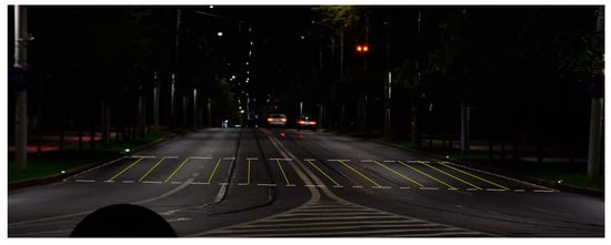 The Section 6 is a case study consisting of field measurements. The method used to calculate the average luminance value was presented in papers [15,16]. The method has the advantage of a higher number of measurements points, which can increase the accuracy up to 20% [17]. The purpose of the case study is to validate that, for symmetric lighting arrangements, the average luminance values are not fundamentally dependent on the observer’s position, and that the proximity of the carriageway can be used for the location of the digital camera.
