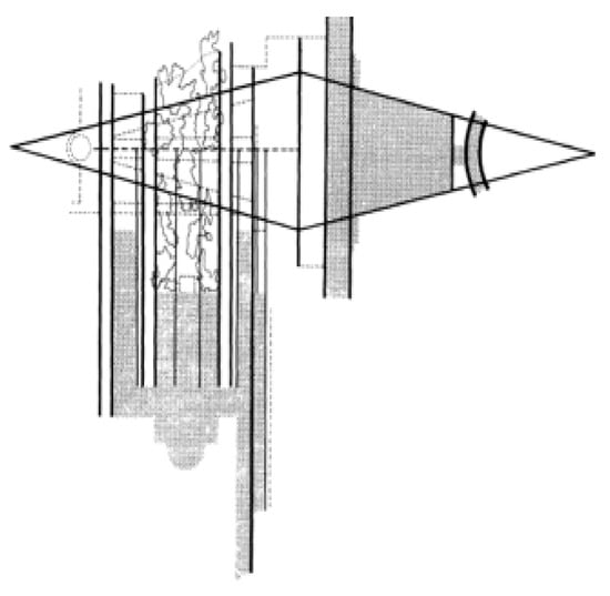 In the same context as the above criticism, Rowe and Slutzky’s diagram of the League of Nations project (see Figure 3) shows the depth of space perception. The diagram is assembled through morphological meaning using geometric thinking. It appears in the depth interval equivalent to a flat field. They claim that depth carries the linguistic meaning of “fluctuates in a continuous activity”. [23] (p. 45). This mistake is due to misunderstanding the meaning of phenomenal in the context of “depth”; that is, the visible walls and openings cannot be defined solely in their spatial experiences.
