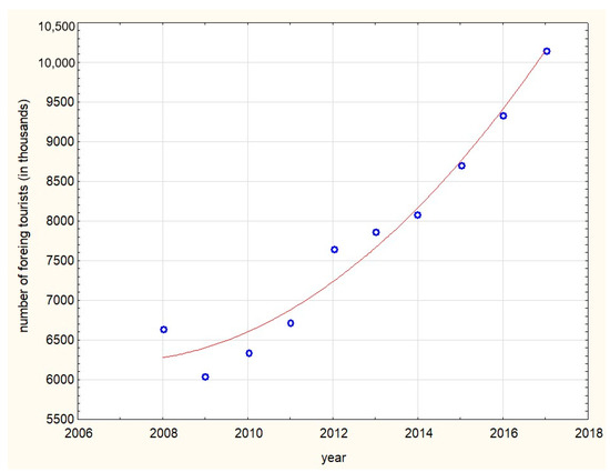 For example, the linear function (1) in the following statistical analysis (Table 6) corresponds to the course of the trend function of the number of four and five-star hotels.
