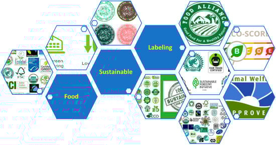 - Asioli, D.; Aschemann-Witzel, J.; Nayga, R.M., Jr. Sustainability-related food labels. Annu. Rev. Resour. Econ. 2020, 12, 171–185. [Google Scholar] [CrossRef]
