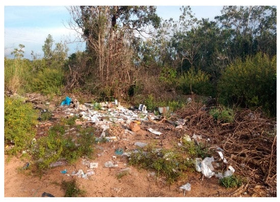 The Juá Community does not have public cleaning or garbage collection and treatment, and thus many solid wastes are thrown directly along the road that gives access to the lake of the same name (Figure 6).