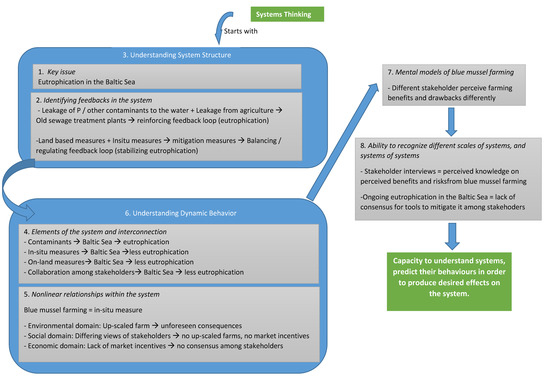 Even through all stakeholder groups agree on the need to control Baltic Sea eutrophication, the issue still has not been solved. Here, the differences between stakeholders’ perspectives and their complex interactions can be seen as a set of interconnected parts of a system, which calls for a structured analysis with the appropriate set of tools and guidelines that can accurately describe a system and support the construction of reliable and flexible frameworks to address wicked problems. Systems thinking, or the organized study of systems, their feedbacks, and their behavior as a whole, is one tool for framing and analyzing wicked problems. Systems thinking uses a set of synergistic skills, tools and guidelines “to improve the capability of identifying and understanding systems, predicting their behavior, and devising modifications to them in order to produce the desired effects” [24], p.675. In other words, systems thinking opens up ways to reflect on complex and interconnected issues in a critical and holistic way, potentially offering solutions that consider the perspectives and problems of all stakeholders across multiple levels.
