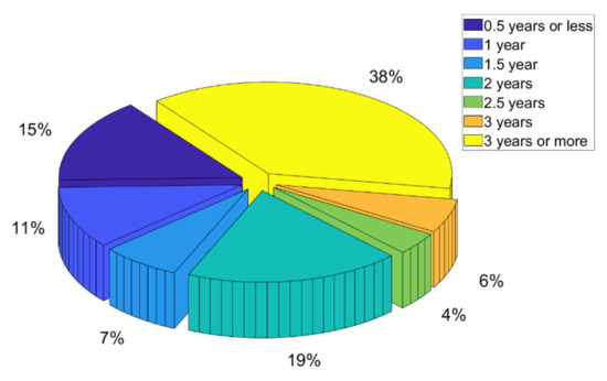 As can be seen in Figure 2, most of the equipment was kept for three years or more, indicating that there was a lack of initiative for recycling this type of waste, making it important to understand what were the factors that led to the accumulation of this equipment in interviewees’ homes. Furthermore, this hibernation time of three years or more also occurs in other university populations, such as the Chinese [9] or the UK [30], demonstrating a possible worldwide trend.