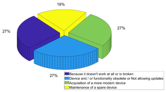 On the other hand, Figure 4 shows the answers to the reasons why the devices were no longer used, and, as can be seen, three reasons accounted for 27% of the answers.