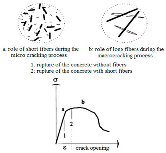 Structure of short and long fibers controlling micro-cracks and their influence on the stress–crack opening curve. Reprinted with permission from Ref. [48]. Copyright 2019 Elsevier.