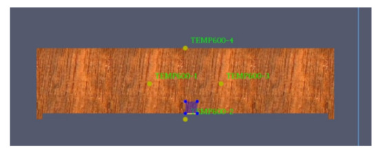- Temperature: when the temperature at measuring points reaches 260 °C, the wood starts to burn (Babrauskas, 2002) [9].