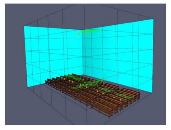 This study is aimed at facilitating the sustainable use and permanent preservation of historic buildings. The onsite survey data showed that the ceiling of the target building of this study was made of wood with a height of 6 m. The seats/benches inside the building were all made of wood as well, and the left/right distances between benches were relatively small (about 65 cm). There were only fire extinguishers in the building, and no other active firefighting facilities or other fire protection equipment, which manifested the concern about the current usage of the building. In order to ensure that this historic building can be continuously used under safe conditions, the suggestions for space improvement are as follows: