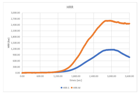The previous discussion pointed out that both individual-bench and multiple-bench fires could reach the temperature of 260 °C, the temperature required for the wood ceiling to ignite, and proposed that relevant monitoring devices and firefighting equipment should be appropriately deployed. However, the required size and effective capacity of the equipment depend on the magnitude of the fire. Since historic buildings have their limitations in terms of space, which thus induce significant difficulties in installing equipment pipelines, it is more important to investigate the actual magnitude of fire in advance, which is exactly the purpose of this study. The possible magnitudes of fire based on individual-bench and multiple-bench simulations are explained as follows: