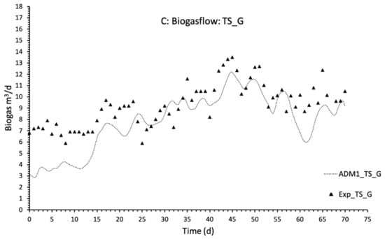 The results of simulations with the ADM1 model adapted to co-digestion confirm that this model is a powerful tool to optimize the process of biogas production. Numerous publications have been noted, indicating that the disintegration and hydrolysis steps are limiting factors of the co-digestion process [].