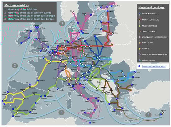 In Europe, the Trans-European Transport Network (TEN-T) serves as the reference layer for those initiatives that cover, under the auspices of the so-called “European Coordinators”, nine hinterland corridors that are connected with key maritime gateways (Figure 1).
