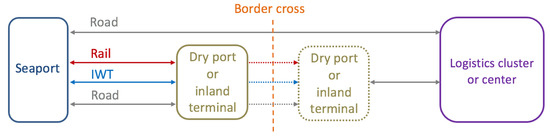 - Sdoukopoulos, E.; Boile, M. Port-hinterland concept evolution: A critical review. J. Transp. Geogr. 2020, 86, 102775. [Google Scholar] [CrossRef]