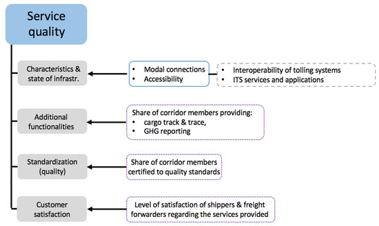 It is also important that KVIs are commonly defined and accepted by the whole corridor community since, as stated before, this is an important prerequisite for enhancing the collaborative environment among its members and implementing, as a next step, those actions/measures that can add further value. It is acknowledged in [27] that a basic set of KVIs should be put forward, which corridor managers may expand upon or reform, based on their contextual knowledge and understanding, thus, coming up with the final set to be integrated into their respective value system. A suggested KVI system is presented below (Figure 5, Figure 6, Figure 7, Figure 8, Figure 9, Figure 10, Figure 11, Figure 12 and Figure 13).