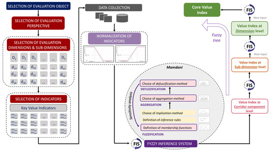 Normalized values of the selected KVIs can thus be represented as fuzzy sets, and, through a 4-stage fuzzy inference process, the corridor’s overall core value can be estimated (Figure 16).
