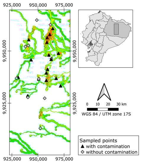 Espinosa, C.I.; Reyes-Bueno, F.; Ramírez, M.I.; Arévalo, A.P.; Bailon-Moscoso, N.; Duncan, D.H. Vulnerability of Human Populations to Contamination from Petroleum Exploitation in the Napo River Basin: An Approach for Spatially Explicit Risk Assessment. Sustainability 2021, 13, 9230. https://doi.org/10.3390/su13169230