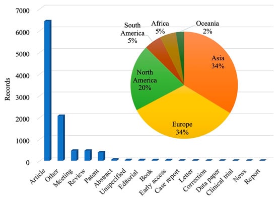 Statistics of research output types and the percentage of countries/regions researched.