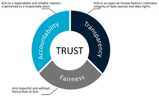 Notional account of ‘trust’ based on the qualities of fairness, accountability and transparency. Figure based on Shin and Park [18], modified by the authors.