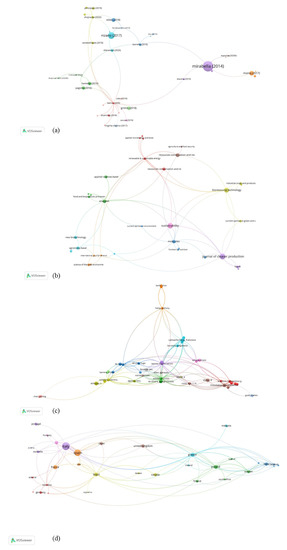 The Journal of Cleaner Production belongs to the same cluster as Sustainability, the Journal of Environmental Management, Resources, Waste Management, Agronomy Research and others. Bioresource Technology is linked to Energy Policy, Green Chemistry, Renewable and Sustainable Energy Reviews, Waste and Biomass Valorization and others. In general, when journals are clustered together and they are co-cited, it means that they belong to the same field of research.