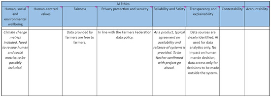 Reading, reviewing, and reflection informed the analysis of ethics in the case study, how and when it appeared, and whether it was specifically related to AI or a more generic approach to ethics. The limitations of that exercise are due to the author’s focus on AI ethics without the philosophical depth an ethicist would bring. However, the evaluation remains valid because very few people trying to navigate AI ethics principles will have any type of in-depth knowledge of ethics. Therefore, the findings could help inform a broader section of the public intending to use AI in sustainable food systems.