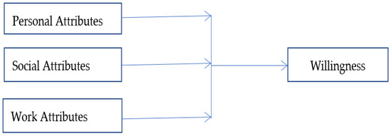 The conceptual model of the study consists of four variables including the coworkers’ willingness as an endogenous variable while personal attributes, social attributes, and work attributes are exogenous variables (as shown in Figure 1). The definitions of the variables are as follows: