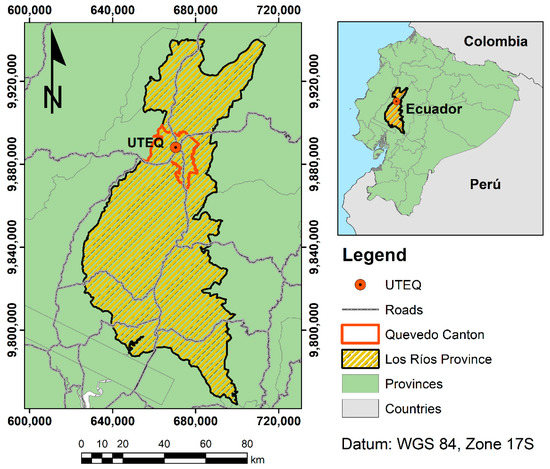 UTEQ university locates in Los Ríos province (Ecuador), as shows Figure 1. This university began its activities on 22 January 1976, as an extension of the “Luis Vargas Torres” university. After multiple efforts by the Quevedo community, the UTEQ creation was on 1 February 1984, with the Faculty of Agricultural Sciences.