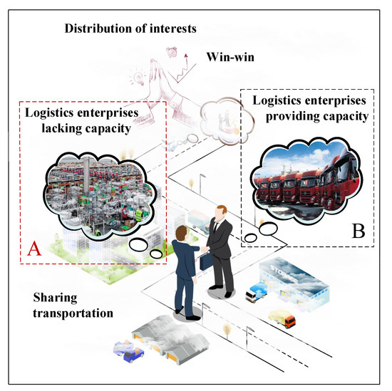The problem scene studied in this paper is that logistics enterprises lacking capacity and providing capacity share resources to reduce costs and increase efficiency, thereby promoting the healthy and rapid development of the entire supply chain. In order to show the problem to be stated in this study clearly, we have drawn the following illustration.