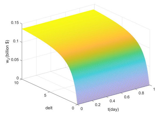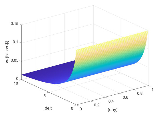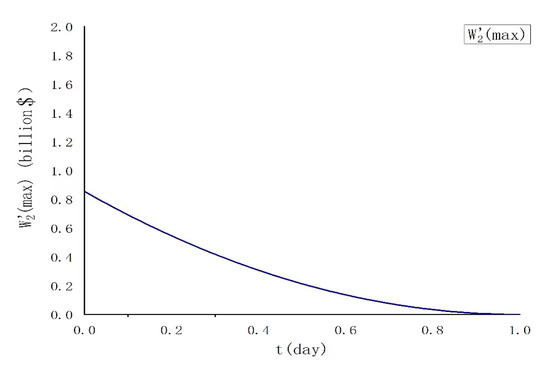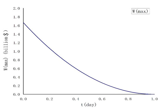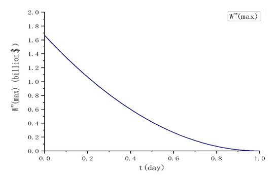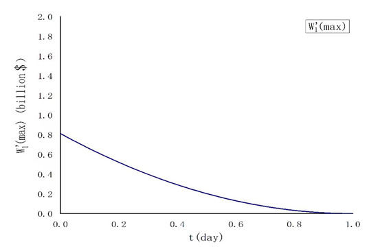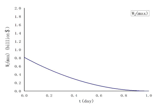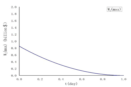 The W(max)-, t diagram can be made as Figure 13. The W(max)-, t diagram can be made as Figure 14. When the value of is different, the income of A and B are obviously different. It can be concluded that the value of has a great influence on the income allocation. With the change of , the changes of W(max) and W(max) can be shown in Table 25.