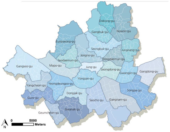 Figure 2 below is a map of 25 districts of Seoul, which are subject to analysis [