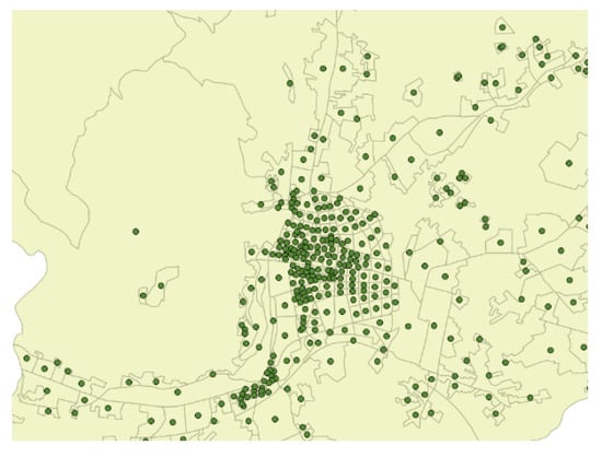In this new type of city, services and activities are no longer located exclusively close to residences and in the central areas but have spread to the sub- and peri-urban areas, giving rise to a polycentric or “patchy” urban development. Precisely due to the dispersion of services over large areas and the need to interconnect the various areas related to different aspects of social life, users have become dependent on private cars [1,2].