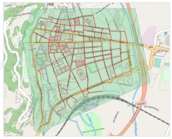 The study area on which the approach was calibrated was the downtown area of Cassino, an Italian town (Figure 5) of about 36,000 inhabitants in the province of Frosinone in Lazio.